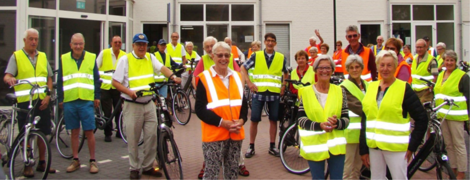 Fietsen is een heel geliefde bezigheid van ons senioren en dus is deze activiteit ook opgenomen in ons programma. Op de donderdagmiddagen in de genoemde periode staat er om 13.30 uur steeds weer een groep enthousiaste fietsers bij Onze School klaar om een leuke tocht te gaan maken. Peter Joppen en Harrie Biemans zijn de kartrekkers bij het fietsen. Zij stippelen mooie en veilige routes uit en zoeken gezellige pleisterplaatsen erbij om de tocht zo aangenaam mogelijk te maken voor de deelnemers. Er wordt rustig gefietst, zodat het ontspannen en veilig is en iedereen kan genieten van de mooie omgeving. Om ervoor te zorgen dat de groep duidelijk zichtbaar is in het verkeer, geldt de afspraak dat iedereen een veiligheidshesje draagt. Het zijn altijd heel gezellige middagen, lekker buiten, lekker fietsen, leuk terrasje, fijn gezelschap, dus aan het einde van de middag komen de deelnemers altijd weer opgewekt en voldaan terug.